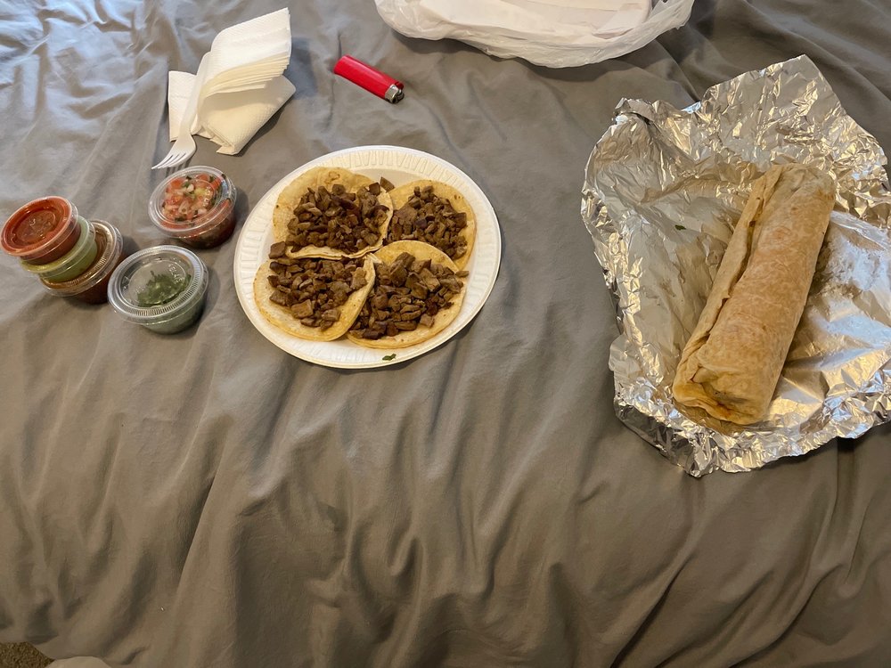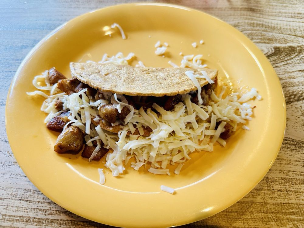 Guacamole, sour cream, cheese, lettuce, pico de gallo, salsa, and your choice of meat, on a hard shell corn tortilla.
